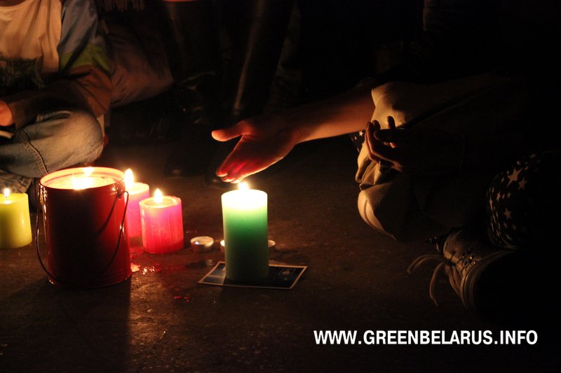 В Барановичах эколого-краеведческое общественное объединение "Неруш" провели световую акцию, выложив горящими свечами надпись "Барановичи. Час Земли 2014".