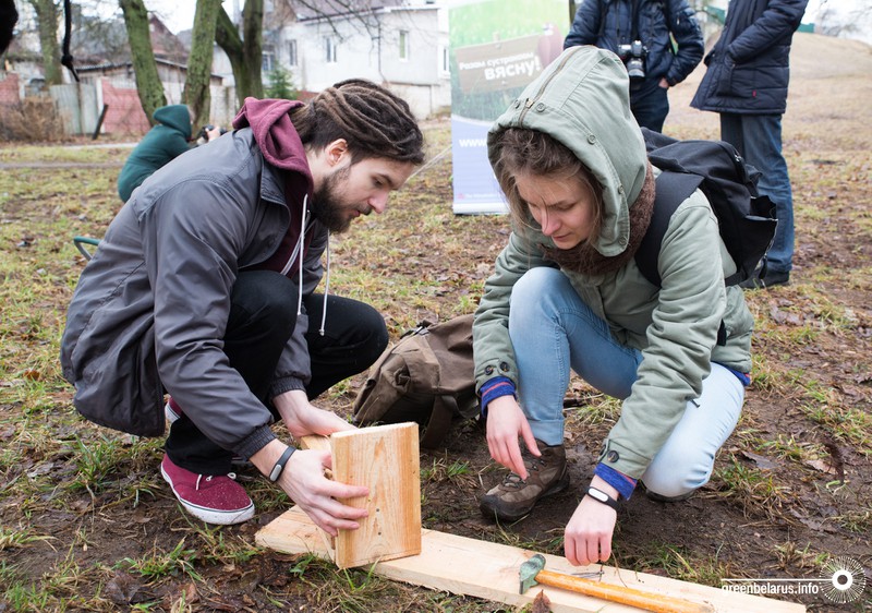 Активисты Товарищества «Зелёная сеть» и общественной организации «Ахова птушак Бацькаўшчыны» (АПБ) устроили скромную, но полезную акцию в уже хорошо знакомом сквере «Котовка». В наличии у них был инструмент и материалы, кое-что притащили местные жители.
