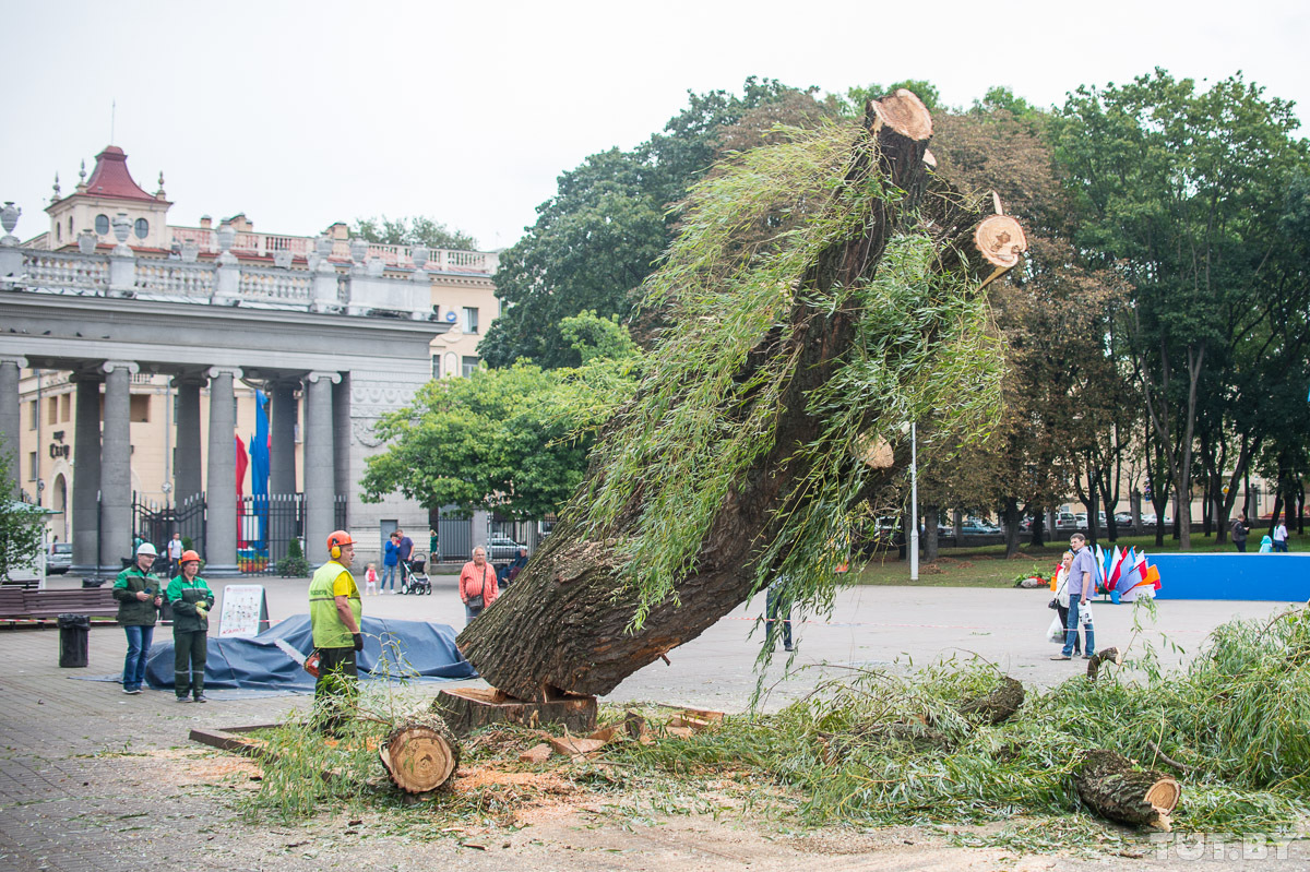 Па інфармацыі Onliner.by падставаю для выдалення разгалістай івы на ўваходнай пляцоўцы ў парк стаў яе небяспечны стан, што падцвярджаецца даследаваннем дрэва спецыялістамі Мінскзеленбуда, Інстытута батанікі НАН, Батанічнага саду.
