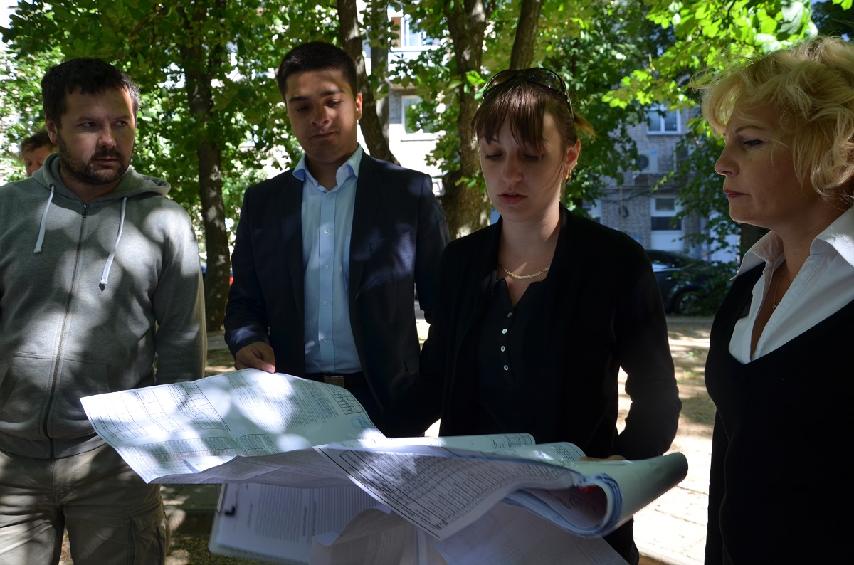 Раніцай, 5 чэрвеня, у цені разгалістых дрэваў сабралася каля шасці чалавек з ініцыятыўнай групы мясцовых жыхароў. Разам з прадстаўнікамі Інстытута батанікі і “Зеленбуда” яны ўважліва агледзелі усе дрэвы, якія былі пазначаныя ў плане пад высечку.