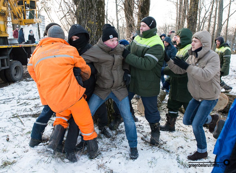 Напомним, что около 15.00 «Зеленстрой» во второй раз за сегодня вернулся в Котовку с подкреплением в виде целого автобуса работников «Ремавтодора». Вместе они стали применять силу, грубо вытесняя активистов с территории вырубки. Милиция, прибывшая чуть позже, поначалу бездействовала, но после вместе с «зеленстроевцами» начала оттеснять протестующих от техники. Однако примерно в 16.30 все работы внезапно прекратили, работников увезли в спецавтобусах.