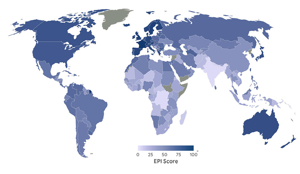 Йельский центр по вопросам экологического права и политики совместно с Колумбийским университетом, семейным фондом Самуэля, фондом МакКалла и МакБейна и Всемирным экономическим форумом подробно изучают экологическую обстановку разных стран мира и раз в два года составляют соответствующий рейтинг.