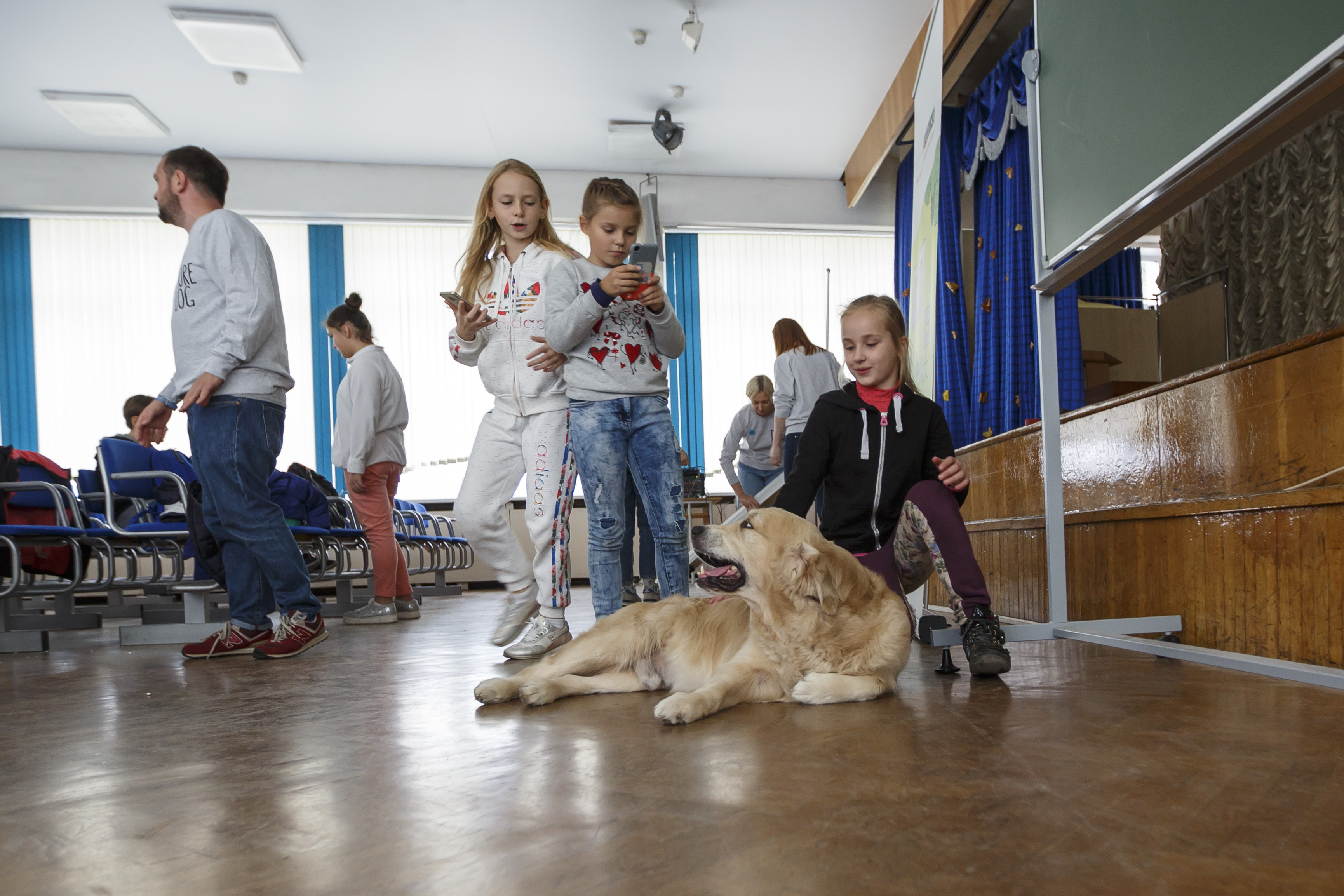 Все ученики получили полезные подарки от проекта — блокноты-раскраски, дублирующие основные тезисы лекции, яркий, стикерпак и значок со слоганом «Лучший друг собаки».