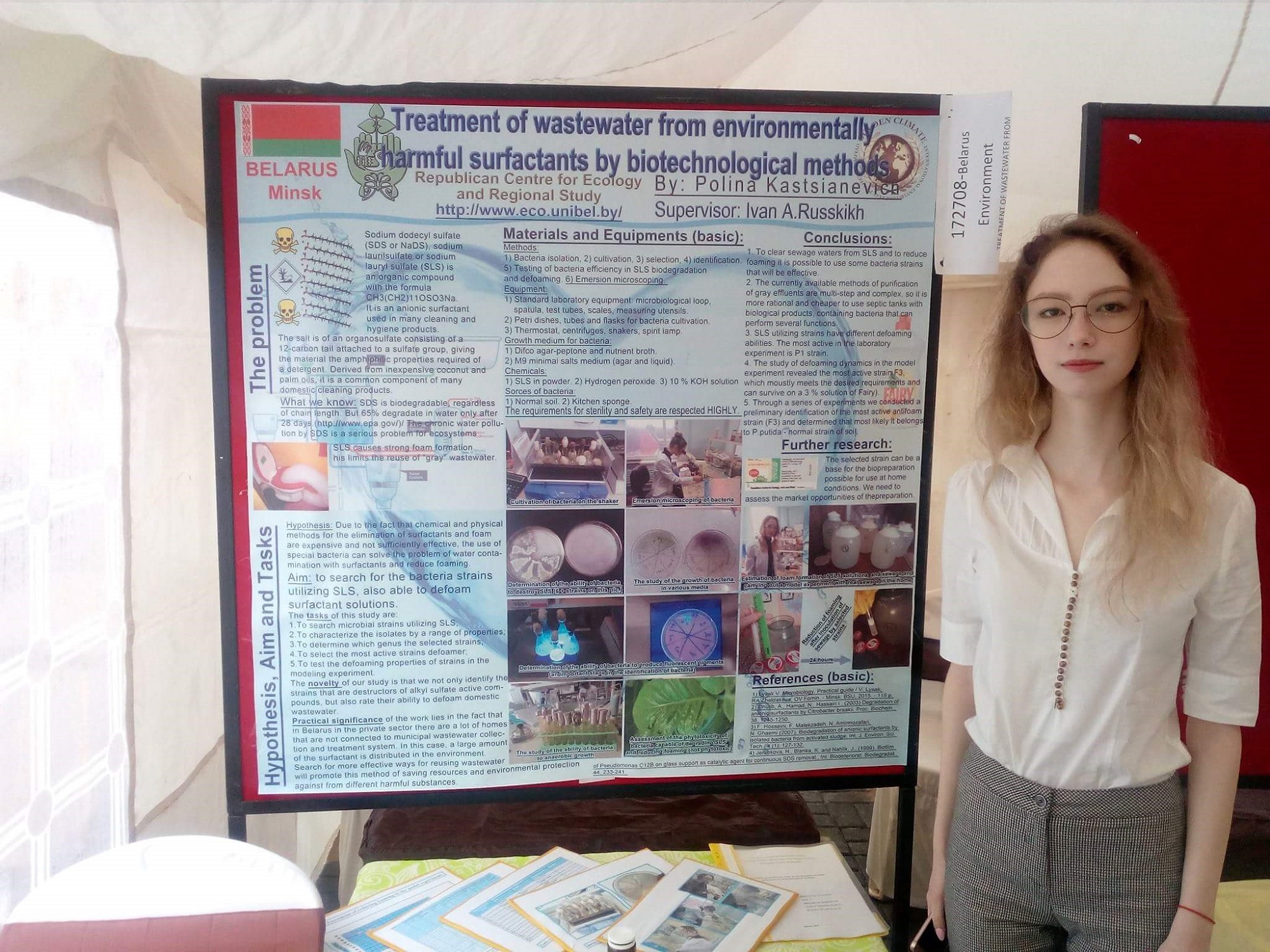 Очистить сточные воды от ПАВ и решить проблему пенообразования Полина попробовала в своём проекте «Микробиологическая очистка «серых» бытовых сточных вод от некоторых пенообразующих ПАВ», который на VII Международной олимпиаде экологических проектов в Кении завоевал Гран-при и золотую медаль.