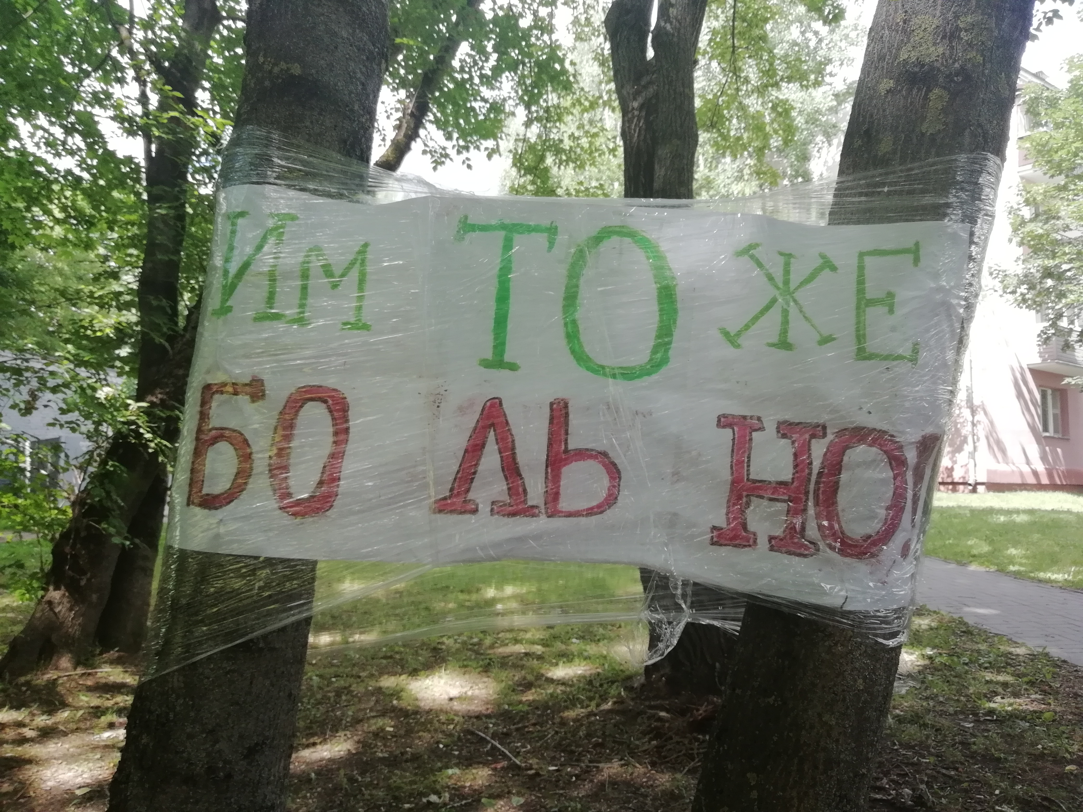 Жильцы отправили заявления о приостановлении вырубки деревьев в администрацию Первомайского района и в Минский городской комитет природных ресурсов и охраны окружающей среды. А на деревья, которые будут вырубаться, повесили самодельные плакаты с надписями «Дыхаю гэтым дрэвам», «Я клён, мне 43 года», «Деревья - лёгкие города, а стоянка?» Люди собираются во дворе каждый день, чтобы следить за ситуацией.