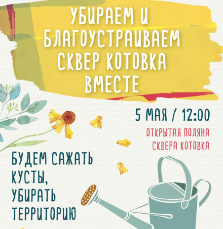 А 5 мая мы приглашаем всех неравнодушных, желающих, активных присоединиться к уборке сквера, а также к посадке живой изгороди.