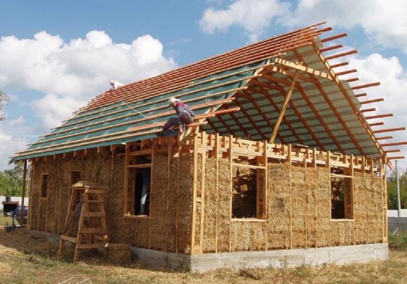 Монтируется всё быстро, в течение месяца: блоки собираются как конструктор лего и скручиваются между собой шурупами. Затем необходимо нанести несколько слоёв глиняной штукатурки, чтобы солома не сгнила, соорудить деревянную крышу и всё – можно въезжать.