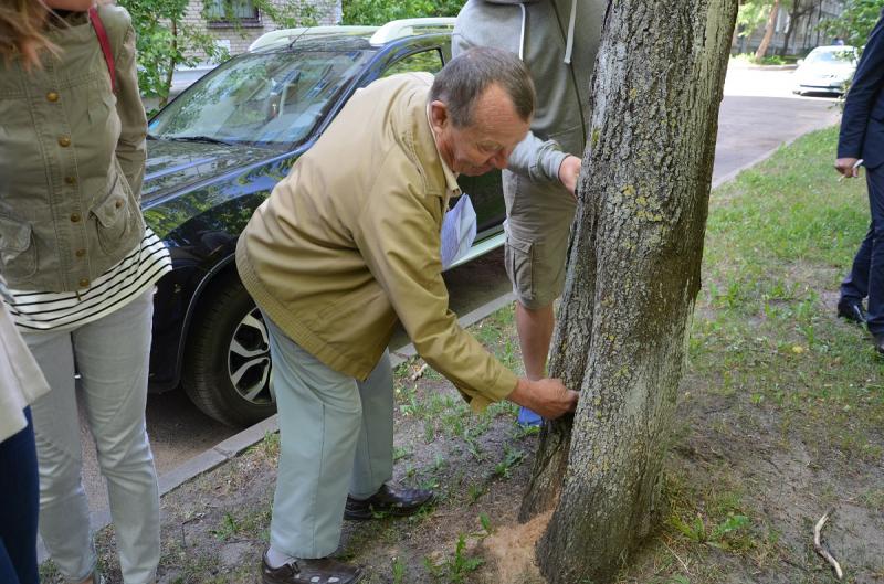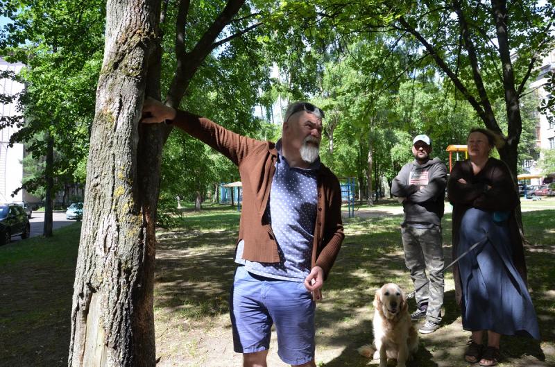Раніцай, 5 чэрвеня, у цені разгалістых дрэваў сабралася каля шасці чалавек з ініцыятыўнай групы мясцовых жыхароў. Разам з прадстаўнікамі Інстытута батанікі і “Зеленбуда” яны ўважліва агледзелі усе дрэвы, якія былі пазначаныя ў плане пад высечку.