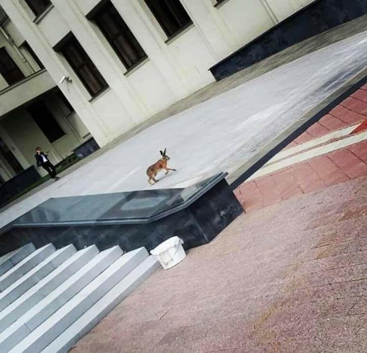 Ахоўнік Дома ўрада паведаміў журналістцы, што шэры жыве на газонах плошчы ўжо каля тыдня (з канца красавіка). Фотамадэль збегла ў бок Чырвонага касцёла, а потым на вуліцу Савецкую. Чытачы здзівіліся, і на наступны дзень рэдакцыя апублікавала больш фота зайца. Тамара Хаміцэвіч упэўніла, што жывёла дзікая, а здымкі праўдзівыя.