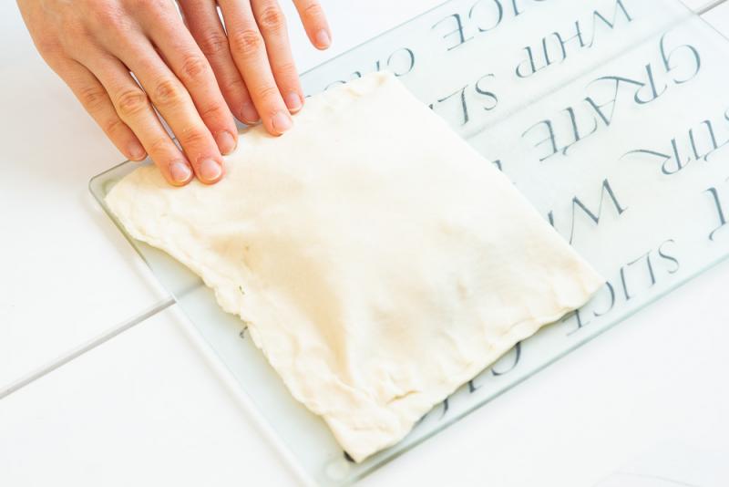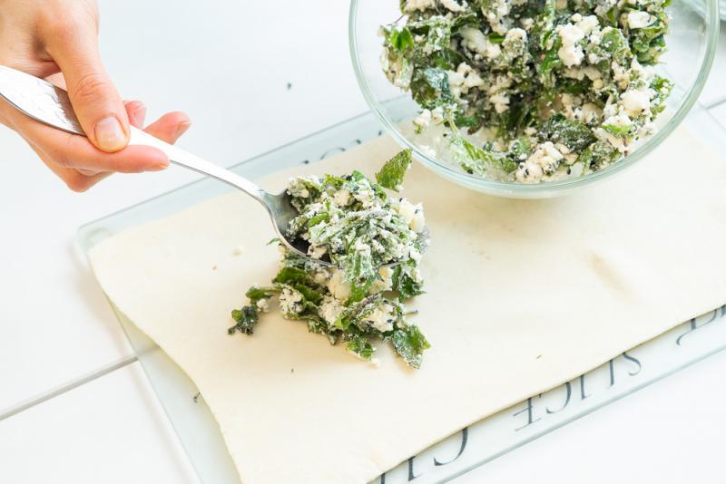 Тесто для слоек можно приготовить самостоятельно заранее или купить готовое в магазине. В этом рецепте использовалось бездрожжевое тесто, купленное в магазине.