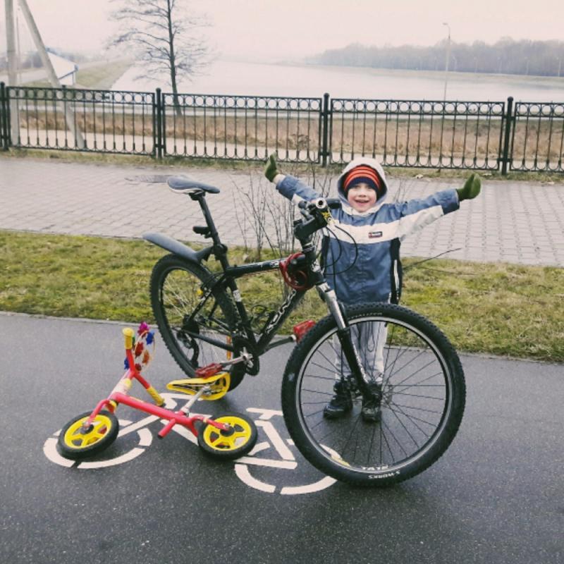 Уже в 4 года сын сел на двухколёсный велосипед и спокойно поехал на нём с первого же раза, настолько он наловчился на этом беговеле.