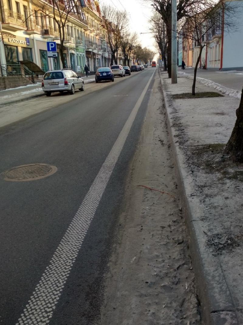 - Из подстерегающих велосипедиста опасностей отмечу всё тот же неубранный край дороги: даже если колея для машин уже сухая, сбоку может оказаться горка из снега и льда.