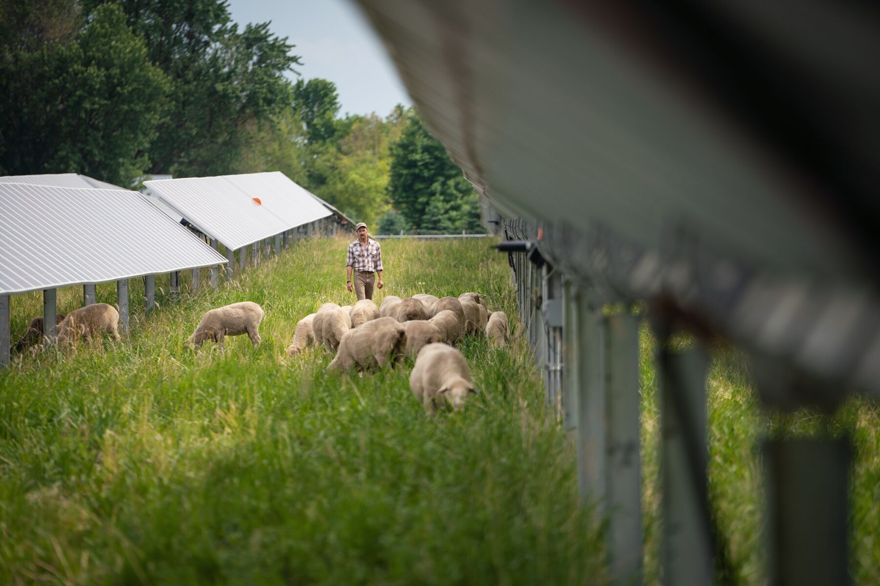 А вот овцы – идеальный компромисс. Они не слишком крупные, не слишком шустрые, уважают конструкции, щиплют аккуратно. Им удобно под панелями: есть тень, нет жары, трава мягкая. И они прекрасно приучаются к маршрутам и зонам.