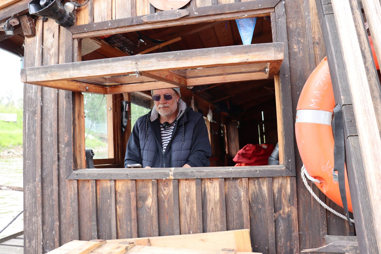 Капитан деревянной лодки «Дар Мазовша» Роберт Янковский управляет ею уже не первый год и с гордостью говорит, что у него беларусские корни — его дед родом из Беларуси. Роберт работает в фонде Rok Rzeki Wisły, и когда есть возможность, водит людей в бесплатные круизы по по реке.