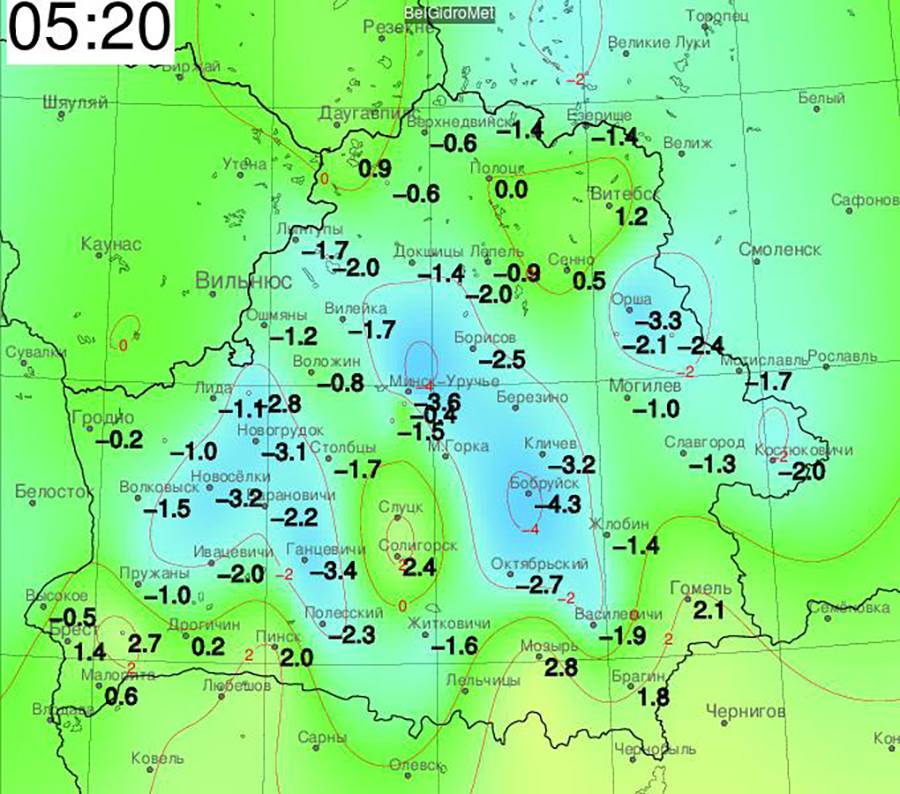 В Минске обновлен суточный минимум, а в Бобруйске побит абсолютный месячный рекорд минимальной температуры.