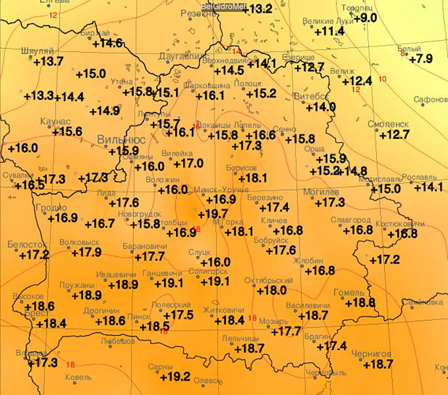Новый абсолютный максимум дня зафиксирован в Самохваловичах — 19,7 градуса выше нуля. Прежний экстремум продержался 30 лет (17 градусов в Бресте).