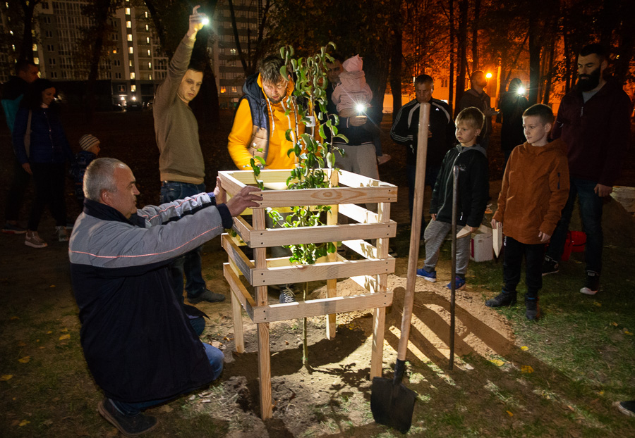 Посадка была согласована с местным Зеленстроем. Деревьям сразу дали имена. Грушу назвали Просто Мария, а яблоню – Мечта.
