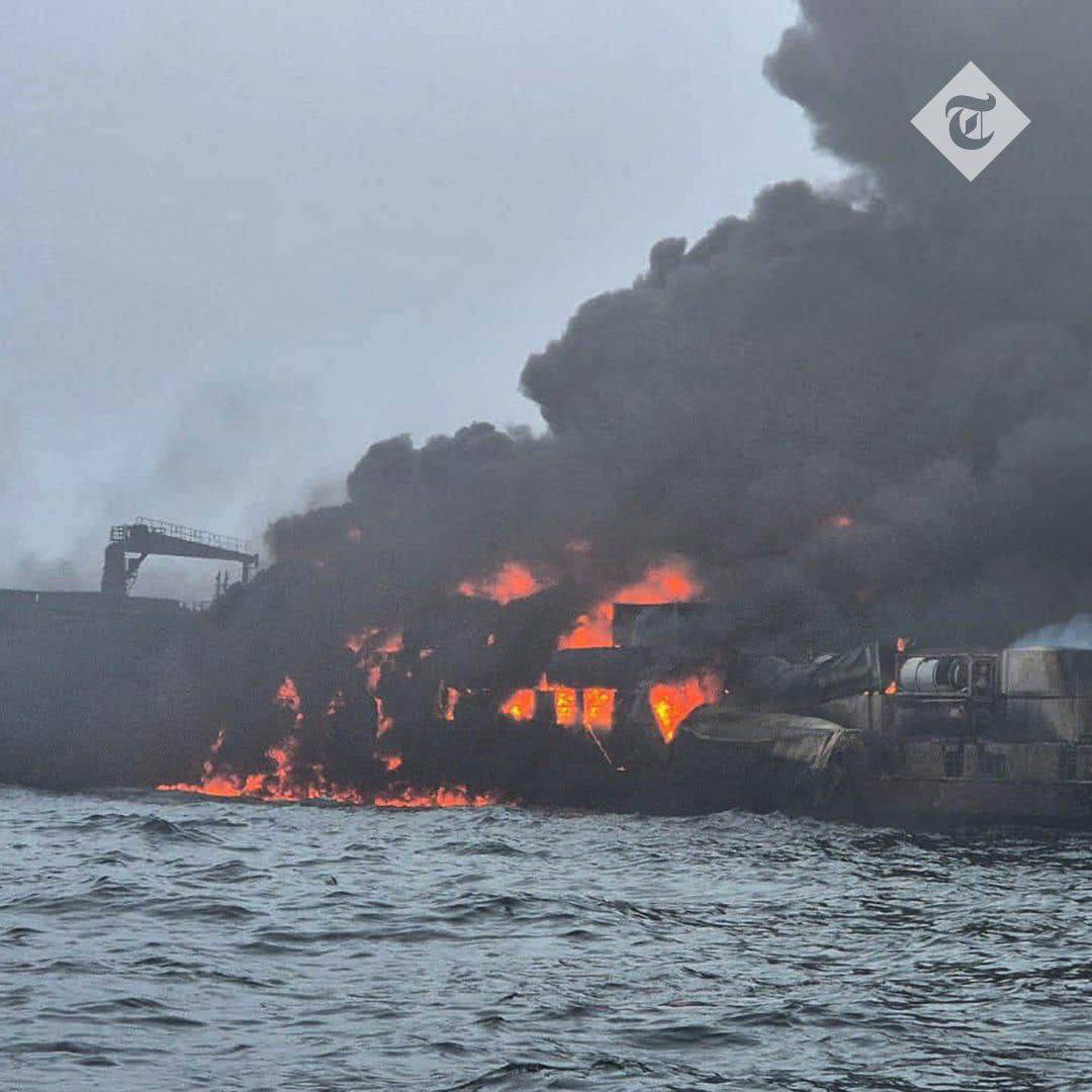 На обоих судах возникли пожары. На берег доставили 32 человека, их состояние пока неизвестно.