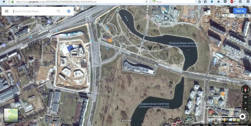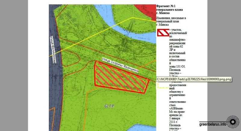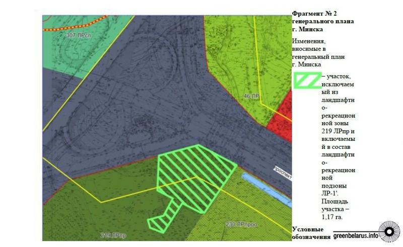 Обе стройки начаты в ландшафтно-рекреационной зоне, относящейся к водно-зелёному диаметру Минска. Статус земель зафиксирован в Генеральном плане Минска, который обновлён в 2015 году. Он прошёл общественное обсуждение и был принят указом. Изменения же, внесённые указом №225, с общественностью не обсуждали.