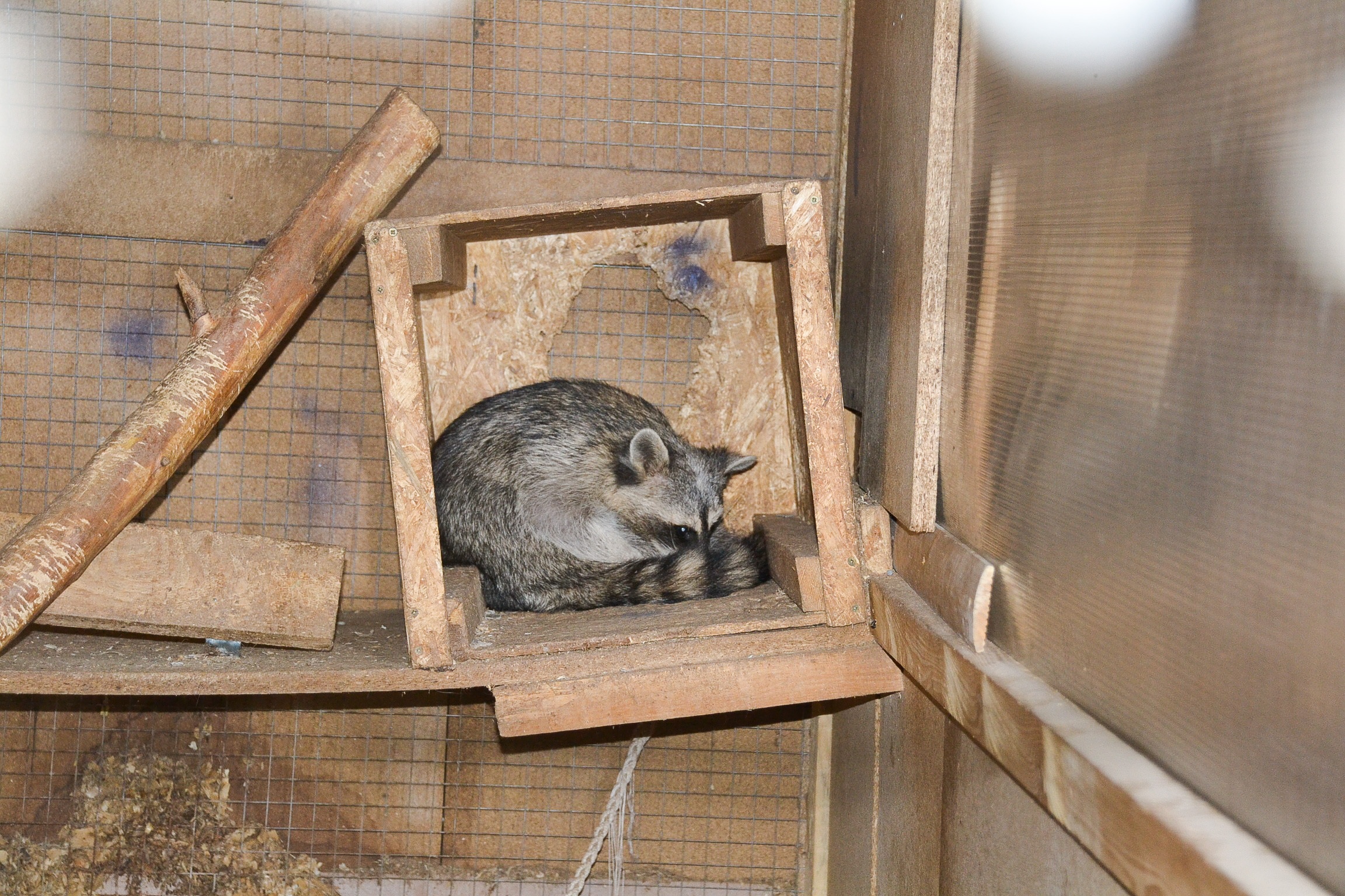 У одного из енотов началось что-то типа лишая: появились проплешины, выпадала шерсть. Он был агрессивен, постоянно чесался, было видно, что животному очень плохо. Енот забивался к себе в домик и целый день лежал, что совершенно не свойственно для этого животного. Ветеринара никто не приглашал.