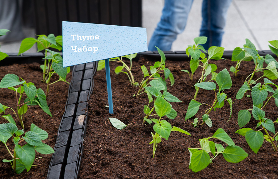 Как выяснилось, этот фактор также предусмотрели. Дело в том, что тяжелые металлы от выхлопных газов и пыль концентрируются примерно на уровне третьего этажа — полтора, три с половиной метра — и до десятого этажа, где находится огород, не долетают. Грунт, куда высажены растения, доставлен из Витебской области и прошел сертификацию, а для полива будет использована очищенная питьевая вода.