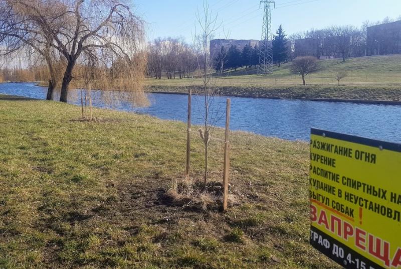 В итоге на согласованных местах появились редкие для Беларуси деревья – белые тополя. Наряду с ивой и ольхой, белый тополь очень любит влажную почву возле водоёмов. Скорость роста белых тополей – до метра в год, с них не сыплется пух, а листья задерживают пыль и фильтруют воздух.