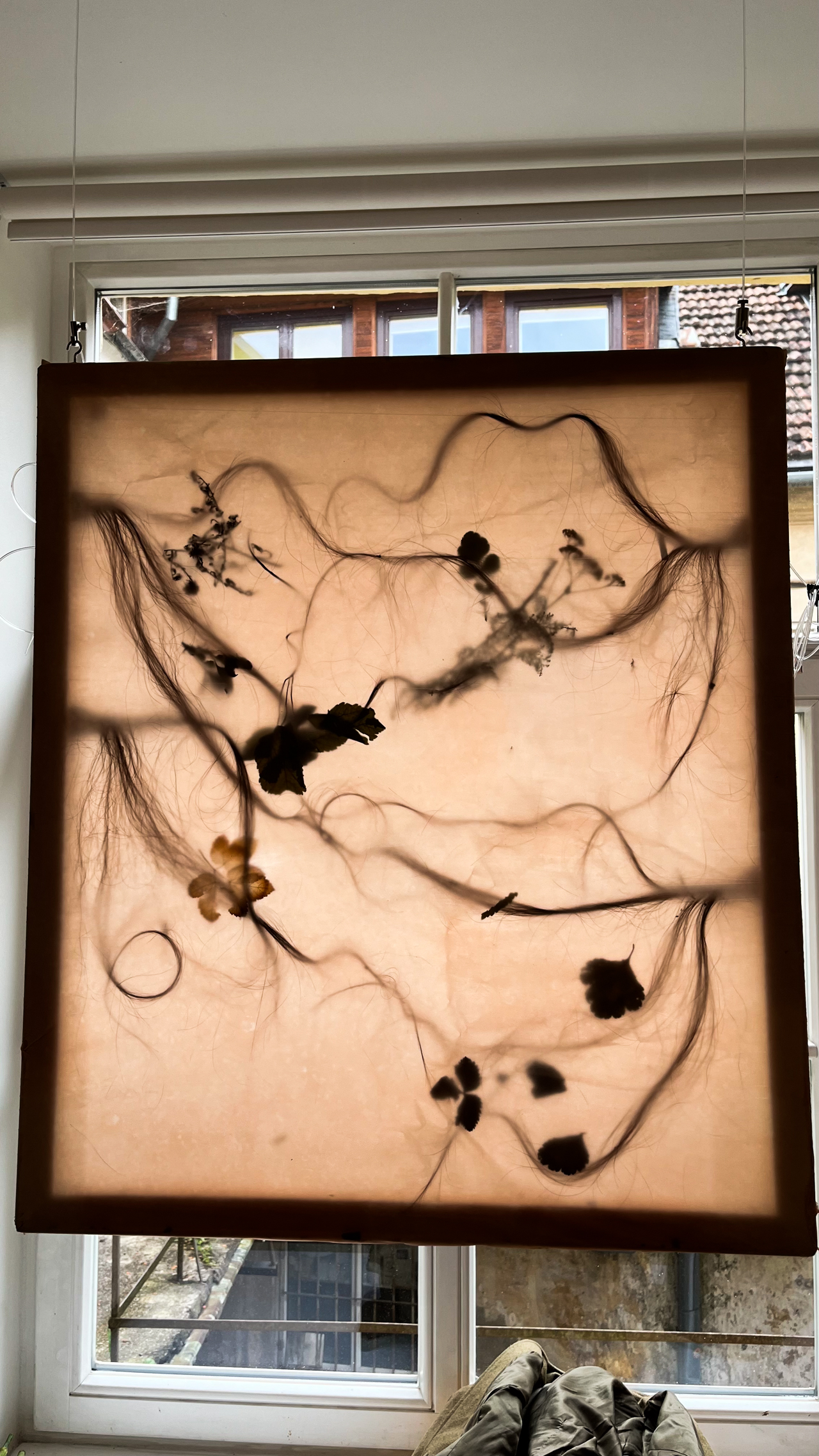 «Мне цікава было зрабіць штосьці на мяжы чалавечай і нечалавечай памяці. Бо мы памятаем па-рознаму. Планета памятае адным чынам, мы — па-іншаму. Таму ў праекце і калажы са спалучэннем чалавечай і нечалавечай памяці. Я брала рамы, зёлкі, сабраныя ў пэўным месцы, аб’ядноўвала іх з сапраўднымі чалавечымі валасамі. Далей рабіла тонкі латэкс — мой матэрыял, які я сама вынайшла. На ім я зрабіла адбіткі чалавечай скуры. Там пяць розных прынтаў: мая скура, скура мужчын, маленькага дзіцяці, сталых людзей — усе яны розныя».