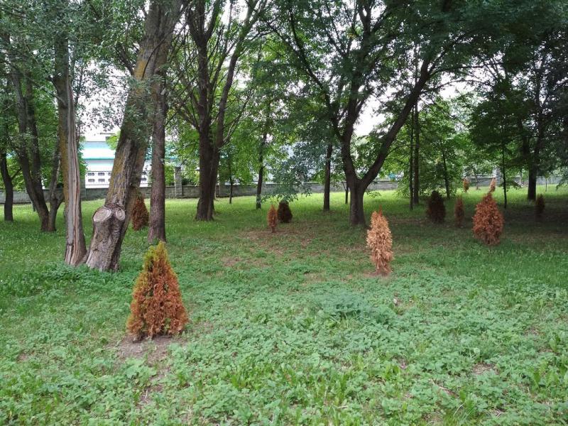 А это значимый для нас объект. Недопустимо высаживать саженцы просто на любые пустые свободные места в парках. Это явное нарушение архитектурно-художественного облика и, между прочим, нарушение авторского права, ведь парки Минска имеют своих архитекторов. Любые изменения перспектив парка должны быть согласованы с авторами. Комитет обязан реагировать на эти проявления глупости хаотичного озеленения.