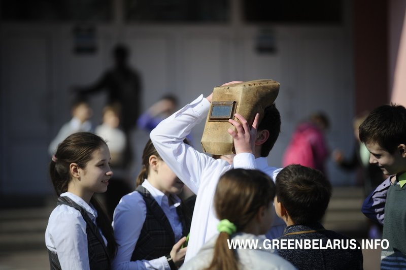 Те, кто не смог прийти во двор гимназии, самостоятельно наблюдали солнечное затмение. В социальных сетях сразу же появились фотографии гомельских пользователей и смешные комментарии к ним.