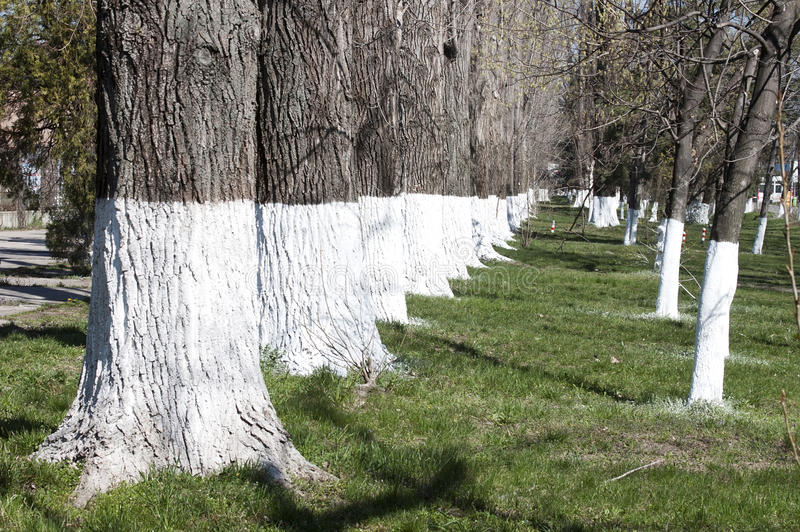 Вот, что об это пишет Артемий Лебедев: «Традиция красить белым деревья и бордюры началась со Второй мировой, это делалось вдоль транспортных артерий для того, чтобы автоколонны могли передвигаться в тёмное время суток с выключенными фарами головного света — так автоколонны были незаметны для вражеской авиации, но при этом имели ориентир для передвижения. Никакого отношения к эстетике и украшению городов это явление не имело».