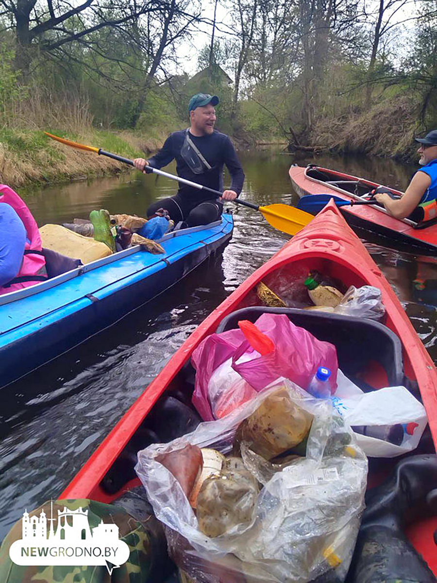«Прошли участок от моста у деревни Бондари до деревни Гущицы. Собрали четыре полных байдарки мусора», — рассказали журналистам участники экологической акции.