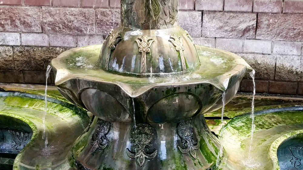 Обратите внимание, как дети любят играть рядом с водой. Пенсионеры сидят рядом на лавочках. Родители набирают воду. Прохожие просто пьют и умываются.