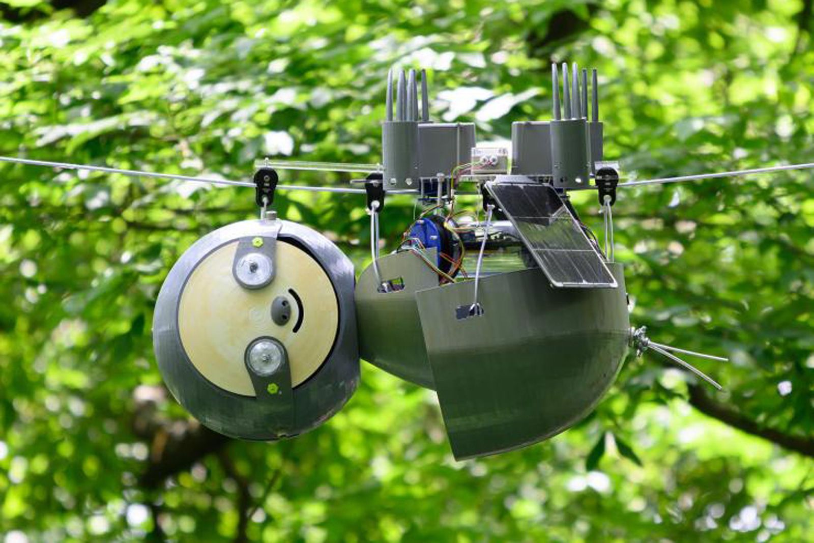 Энергоэффективный робот будет находиться на подвешенных кабелях в кронах деревьев Ботанических садов Атланты и фиксировать показатели температуры, влажности воздуха и уровня углекислого газа.