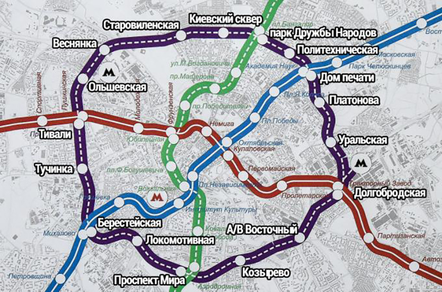 Так, особенностью участка третьей ветки от станции «Юбилейная площадь» до «Парка Дружбы народов», который протянется в сторону Зелёного Луга, является высокий уровень грунтовых вод.