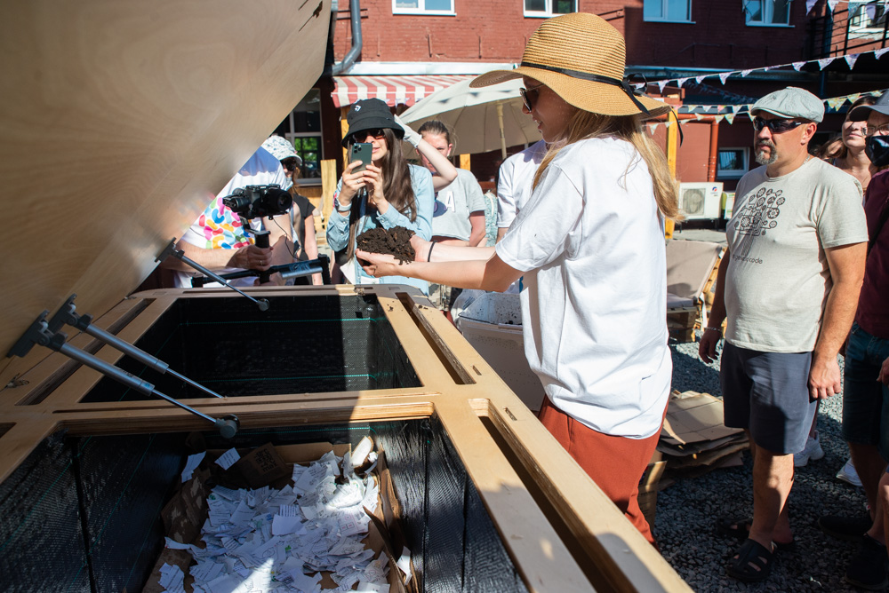 Преимущество такого компостера в том, что уход за ним минимальный, и не нужно будет тревожить червей каждый раз при удалении компоста. Однако просто поставить компостер — это еще половина дела. Перед командой стояла задача сделать объект привлекательным для горожан.