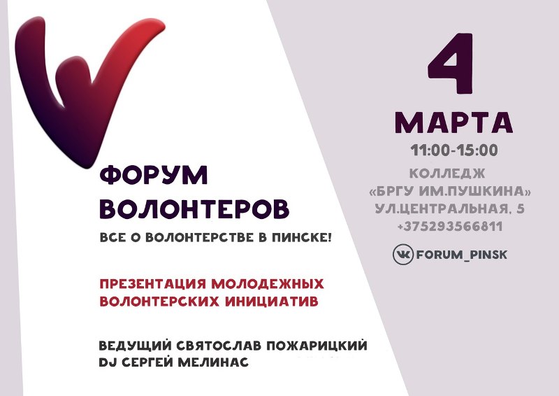 Форум будет проходить с 11.00 до 15.00, по адресу: г. Пинск, ул. Центральная 5.
