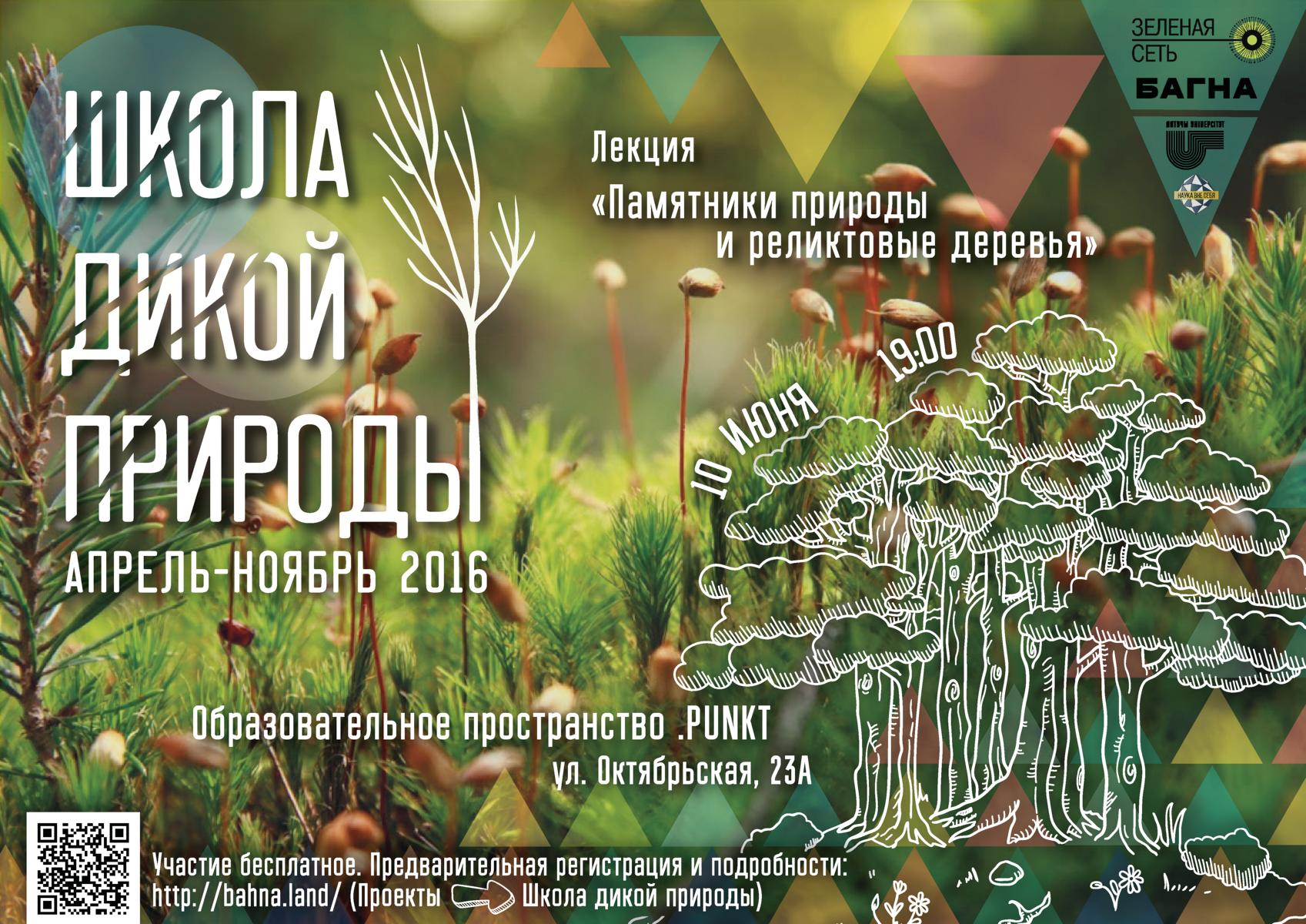 В этот раз мы познакомимся с самыми маленькими, но важными и уникальными особо охраняемыми природными территориями — памятниками природы. Лекция «Памятники природы и реликтовые деревья» пройдет 10 июня в 19.00 по адресу: ул. Октябрьская 23а (образовательное пространство PUNKT). Для участия в лекции просим зарегистрироваться по ссылке. Для дистанционного прохождения курса перейдите по ссылке и выберите Школа дикой природы.