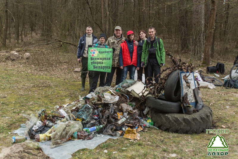 Первой акцией инициативной группы «Зелёный Дозор» в Гродно стала очистка леса возле форта №8 около деревни Гибуличи в рамках всемирной уборки «Зробім!». Действовали по алгоритму «Зелёного Дозора».